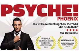 Excellent for cruise lines, or audiences who have witnessed Phoenix’s performances previously. Step into the extraordinary with Psyche, the multi-award-winning mentalist show that redefines live entertainment. Every moment is masterfully woven into a tapestry of jaw-dropping amazement, taking audiences as close as possible to experiencing real, live mind reading. Featuring a show-stopping mediumship routine and a breathtaking finale of back-to-back astonishing revelations, Psyche delivers hit after hit of unforgettable moments. Winner of the prestigious Adelaide Fringe Festival Award, this show is a must-see for anyone seeking world-class mentalism at its finest.